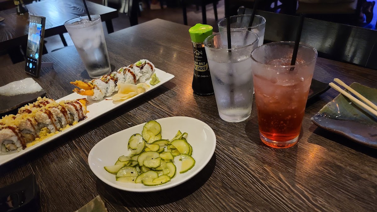 I came here after seeing a post about their happy hour deals, and it did not disappoint! It’s located in a plaza with other retail stores, so there was plenty of parking when I went. I went specifically for happy hour and they had a good selection of rolls and appetizers — from miso soup to gyozas. I ordered the cucumber salad, spicy tuna roll, two pieces of tuna, and a deep-fried roll with eel inside. Everything was fresh and delicious. The inside is cute, clean, and cozy — perfect for a casual sushi spot. I’ll definitely be back to try more!